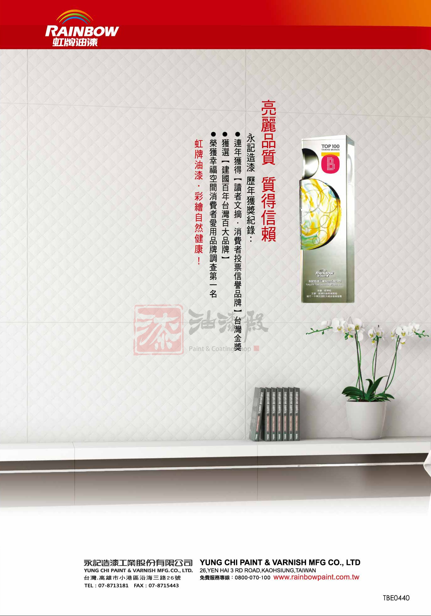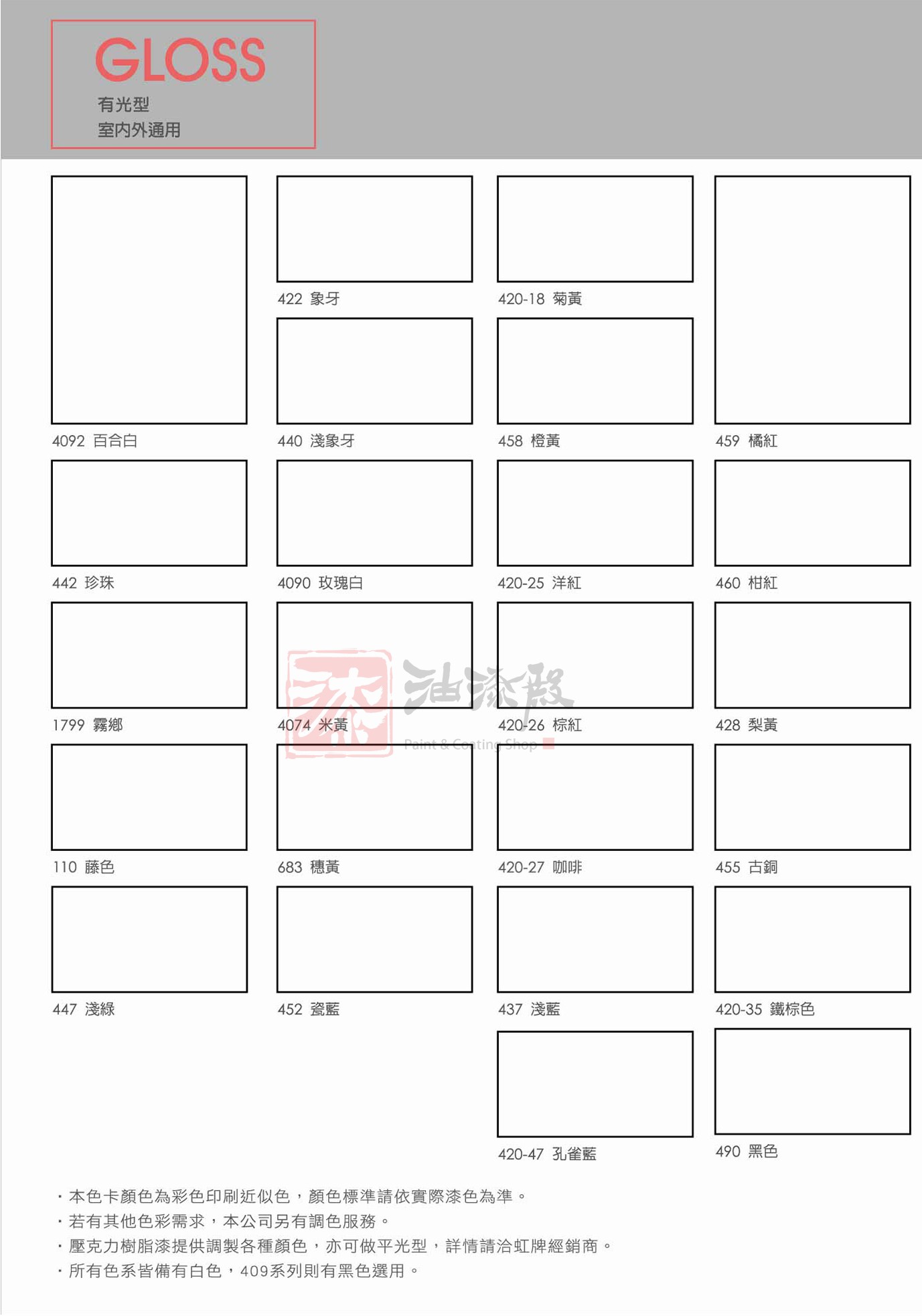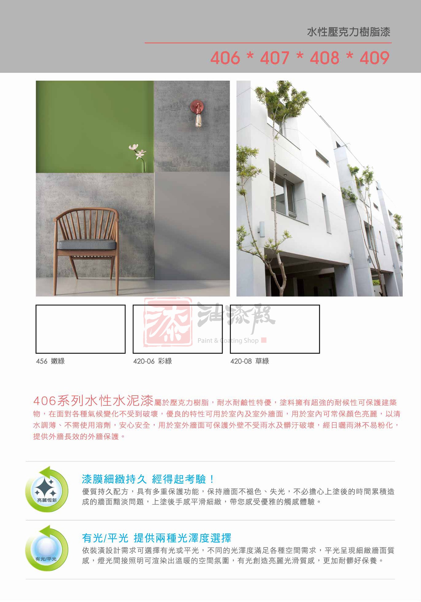 室內外通用水泥漆,有光表面不怕水、耐刷洗,建議塗布至少2道,1加侖可塗刷6.5坪(刷2道的面積)。