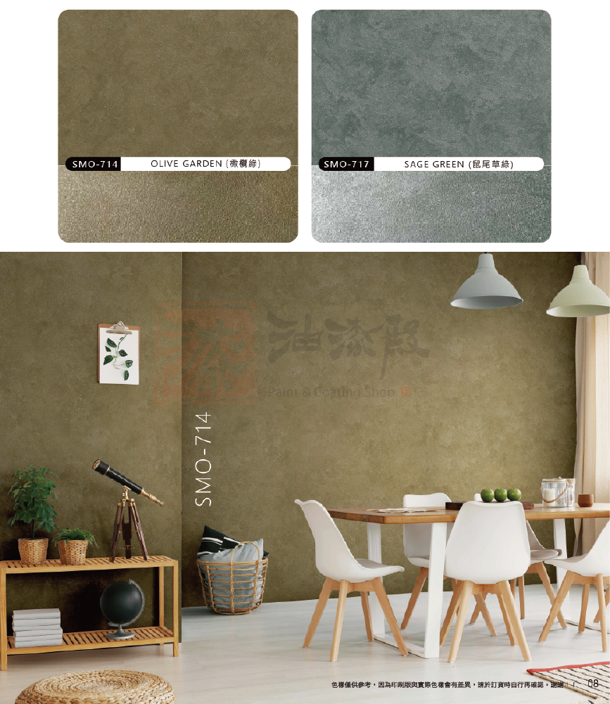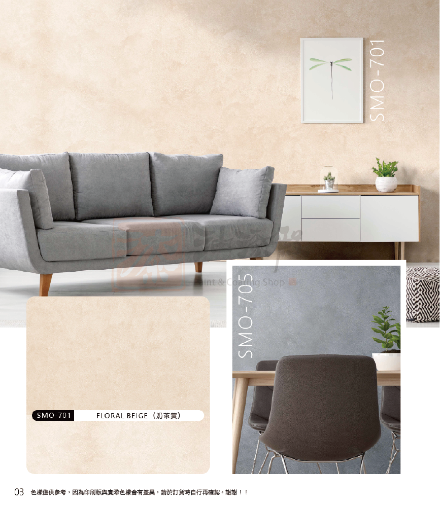 牆面1組能施作1.8-2.1坪。天花板1組能施作1.5-1.8坪。柔和又舒服的色調加上金屬飾面的處理,讓視感呈現出細緻、晶瑩 、靈動,宛如覆蓋在婚紗緞布面料上的真絲歐根紗,契合潮流又不脫古典氣息,完美呈現出室內空間的時尚感受。