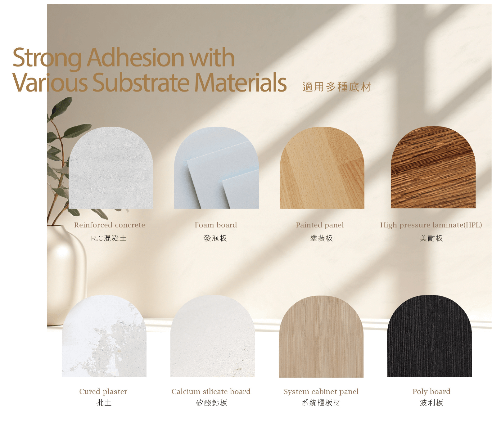 擁有良好的附著性,可適用於多種底材,例如:R.C混凝土、批土、塗裝板、矽酸鈣板、發泡板、系統櫃板材、美耐板、波利板等等,能抑制牆面黴菌滋生,具有優異的耐鹼、耐水性能。多功能底漆提供四款顏色選擇,施作底漆時同時具有蓋色效果,有助於面漆塗刷時上色度更好!2道工序:1加侖裝可塗刷6坪(註:間隔塗裝至少需等待3小時以上)